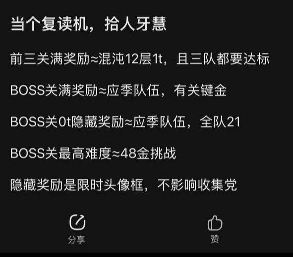 Full rewards in the BOSS stage ≈ Seasonal meta team, with key 5-star characters.