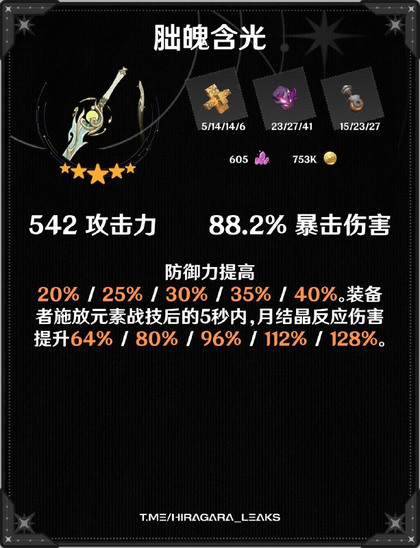 冰元素:暴击伤害提升20%。